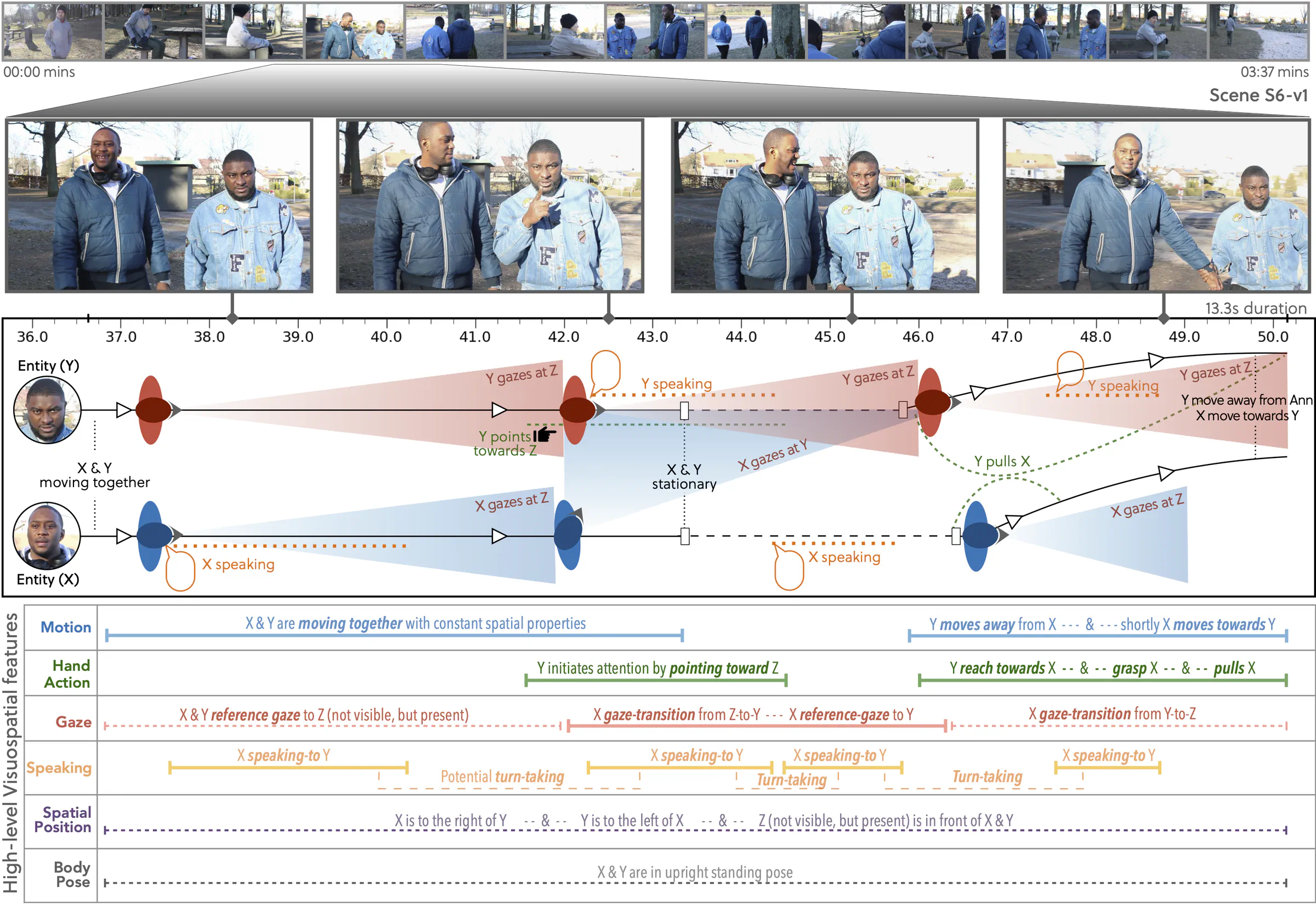 The talk highlighted the role of spatial cognition and visuospatial attributes in everyday human activity, and how these structures shape event segmentation, prediction, and retrieval. Sensitivity to visuospatial organization was framed as a foundational step in event understanding, motivating the use of attentional measures to study event comprehension. Particular emphasis was placed on attentional synchrony, alongside related attention metrics, to analyze selected film scenes through a visuospatial event model. The presentation further reported findings from an in-depth multimodal visuospatial analysis of movie scenes (including head turns, hand actions, and related behavioral cues) correlated with visual attention patterns obtained via eye-tracking. The results differentiated event segments associated with high and low attentional synchrony, characterizing how attention distributions relate to underlying visuospatial features. Overall, the talk illustrated how attentional measures can be used to study scenes with varying visuospatial complexity, revealing how spatial structure guides observer attention in context.
